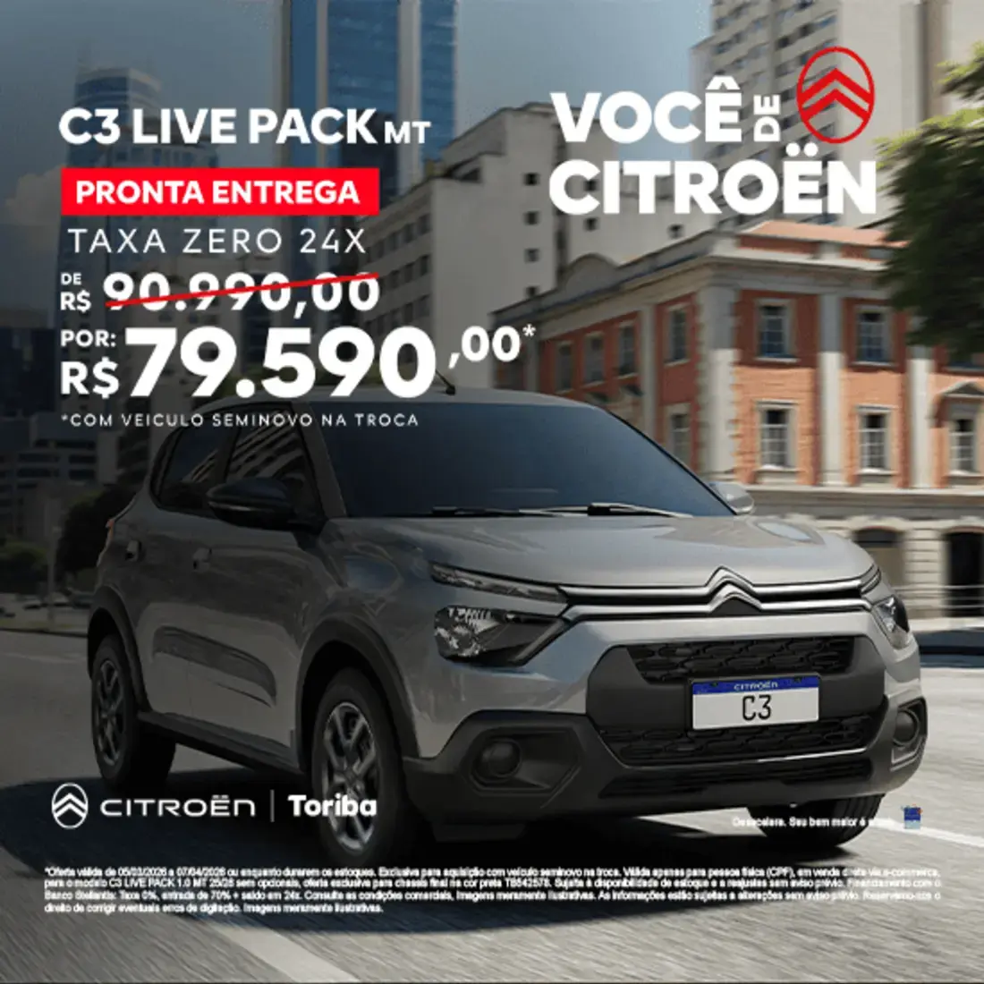 Vendas diretas com as melhores condições é na Toriba Citroën.